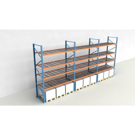 Das Palettenregal von NEDCON Lagertechnik hat Abmessungen von 7.000x8500x1.100 mm (HxBxT) und verfügt über 5 Lagerebenen. Jedes Regalfeld ist mit 4 Traversenebenen ausgestattet und kann je Ebene mit bis zu 3.000 kg (1000 kg je Europalette) belastet werden. Die maximale Feldlast beträgt 12.000 kg und darf niemals überschritten werden. Die lichte Fachhöhe zwischen den einzelnen Ebenen beträgt 1.300 mm. Die Palettenregal Traversenebenen sind mit Gitterböden vom Typ MantaMESH in der 750 kg Variante (je Palettenplatz) ausgestattet.