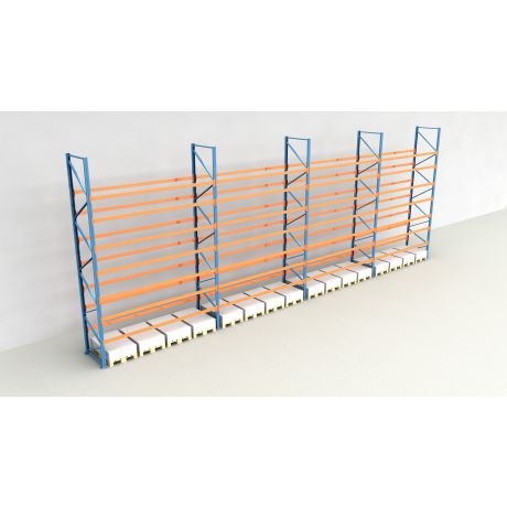 Das Palettenregal von NEDCON Lagertechnik hat Abmessungen von 7.500x14900x1.100 mm (HxBxT) und verfügt über 8 Lagerebenen. Jedes Regalfeld ist mit 7 Traversenebenen ausgestattet und kann je Ebene mit bis zu 4.700 kg (1175 kg je Europalette) belastet werden. Die maximale Feldlast beträgt 12.000 kg und darf niemals überschritten werden. Die lichte Fachhöhe zwischen den einzelnen Ebenen beträgt 800 mm. Bitte beachten Sie, dass auf den Traversen keine zusätzlichen Auflagen wie Spanplatten, oder Gitterböden vorhanden sind.