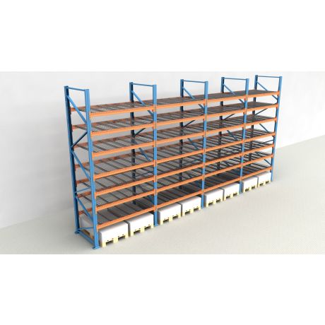 Das Palettenregal von NEDCON Lagertechnik hat Abmessungen von 7.500x7800x1.100 mm (HxBxT) und verfügt über 8 Lagerebenen. Jedes Regalfeld ist mit 7 Traversenebenen ausgestattet und kann je Ebene mit bis zu 3.800 kg (1900 kg je Europalette) belastet werden. Die maximale Feldlast beträgt 12.000 kg und darf niemals überschritten werden. Die lichte Fachhöhe zwischen den einzelnen Ebenen beträgt 850 mm. Die Palettenregal Traversenebenen sind mit Gitterböden vom Typ MantaMESH in der 750 kg Variante (je Palettenplatz) ausgestattet.