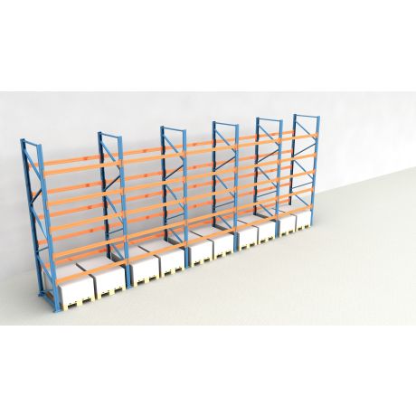 Das Palettenregal besteht aus insgesamt 5 Regalfeldern mit einer Breite von 1.825 mm und bietet Platz für 60 Europaletten (inklusive Bodenebene).