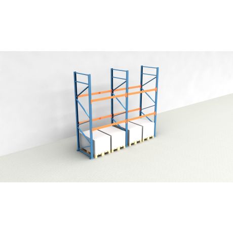 Das Palettenregal besteht aus insgesamt 2 Regalfeldern mit einer Breite von 1.825 mm und bietet Platz für 12 Europaletten (inklusive Bodenebene).