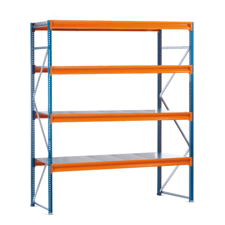 Weitspannregal W100 Grundregal 2500x2500x1200 mm (HxBxT) 4 Ebenen mit Holz Fachlast 1015 kg